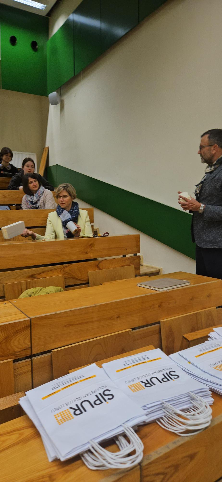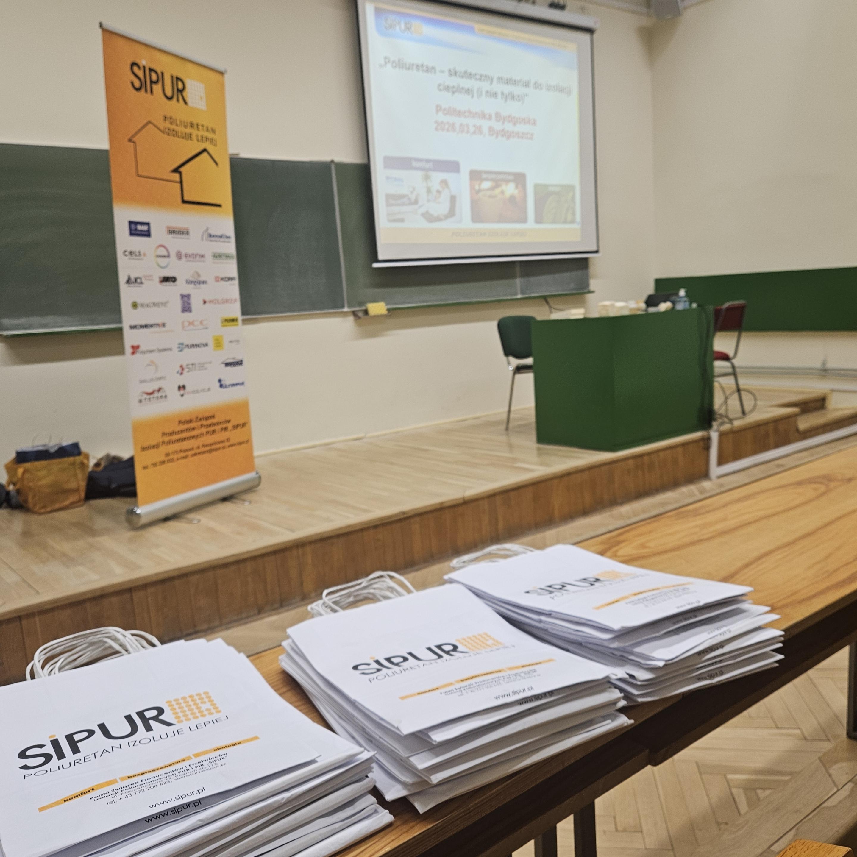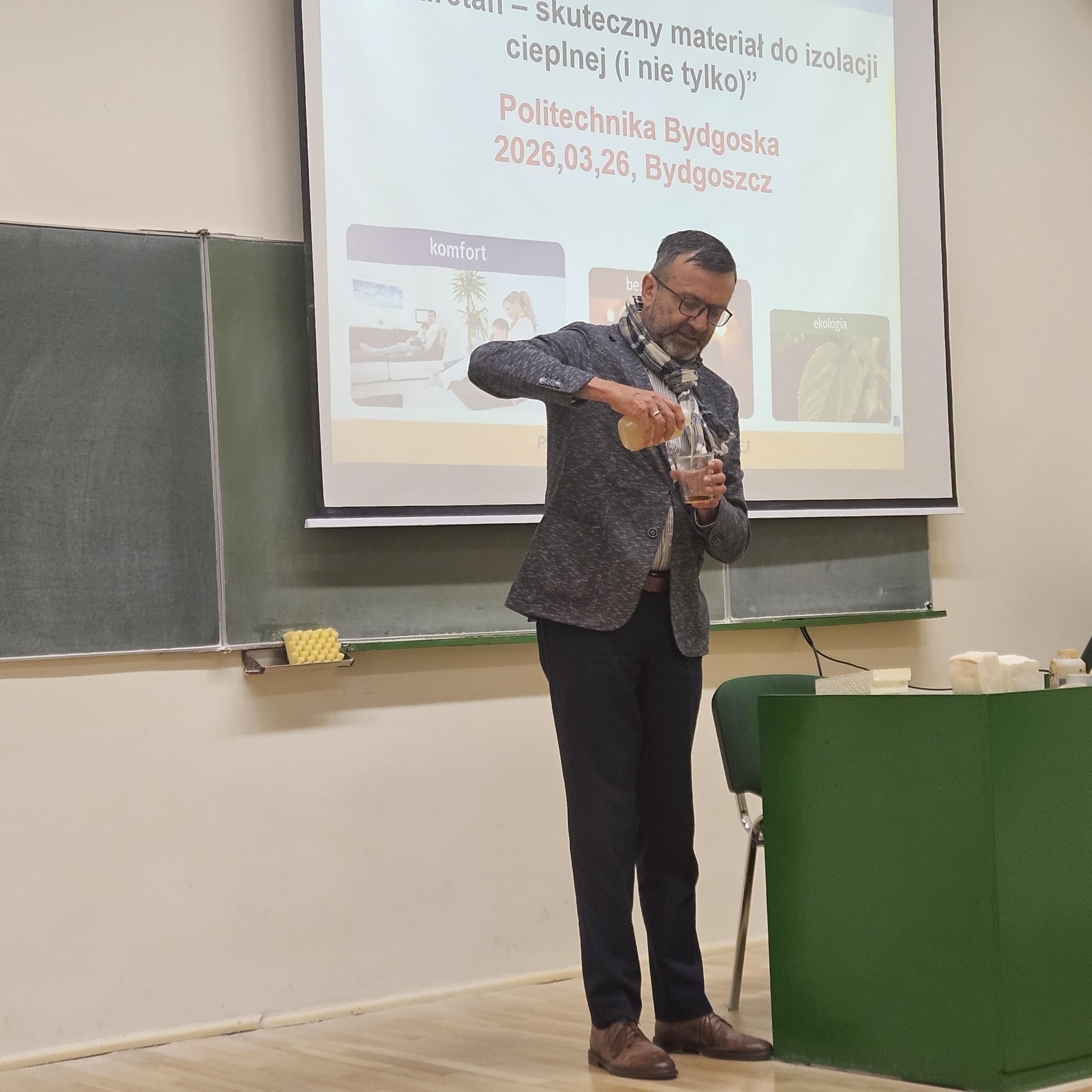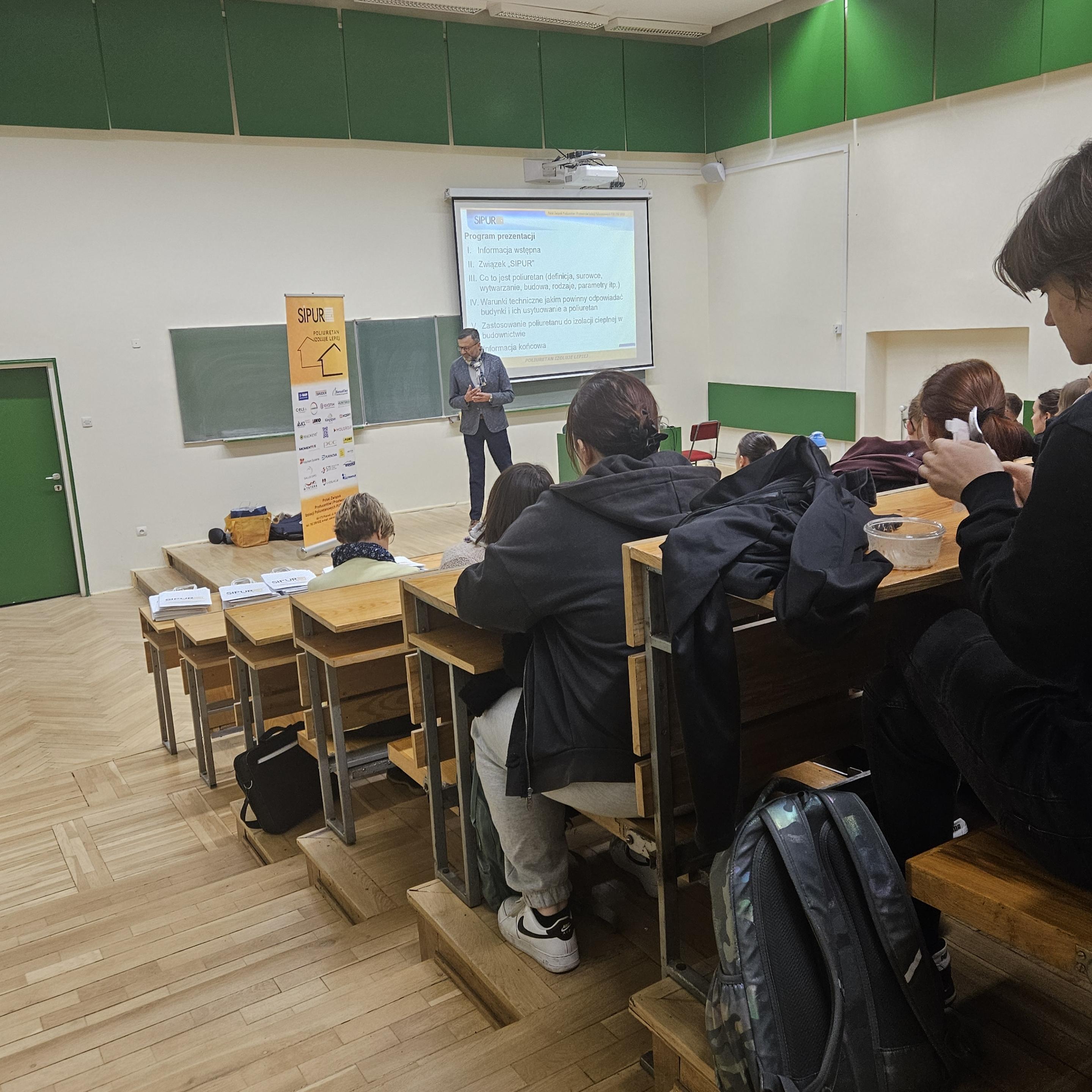 Uczestnicy mieli wyjątkową okazję nie tylko zdobyć wiedzę teoretyczną, ale również doświadczyć jej w praktyce. Studenci mogli dotknąć i porównać różne rodzaje materiałów izolacyjnych, takich jak pianka poliuretanowa zamkniętokomórkowa i otwartokomórkowa, a także na żywo zobaczyć, jak błyskawicznie – w wyniku połączenia odpowiednich substancji – powstaje gotowy materiał.